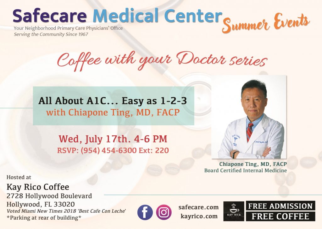Safecare Medical Center is hosting an event at Kay Rico Coffee, Wednesday July, 17, 2019, from 4-6pm.